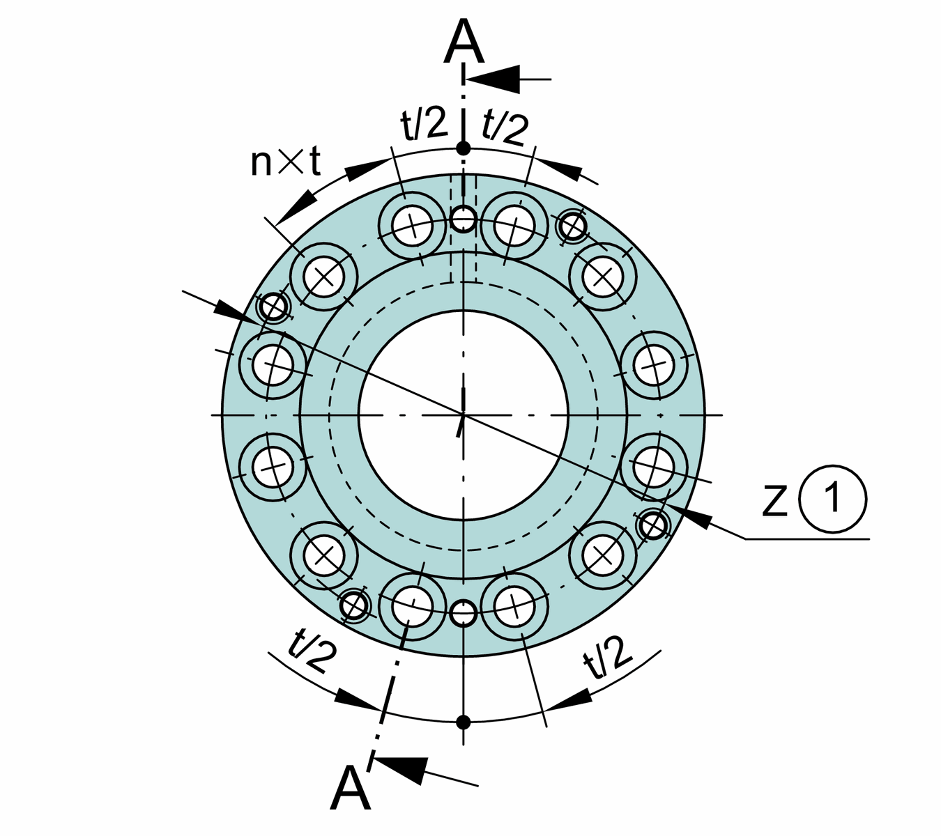 Pitch diameter (hole)