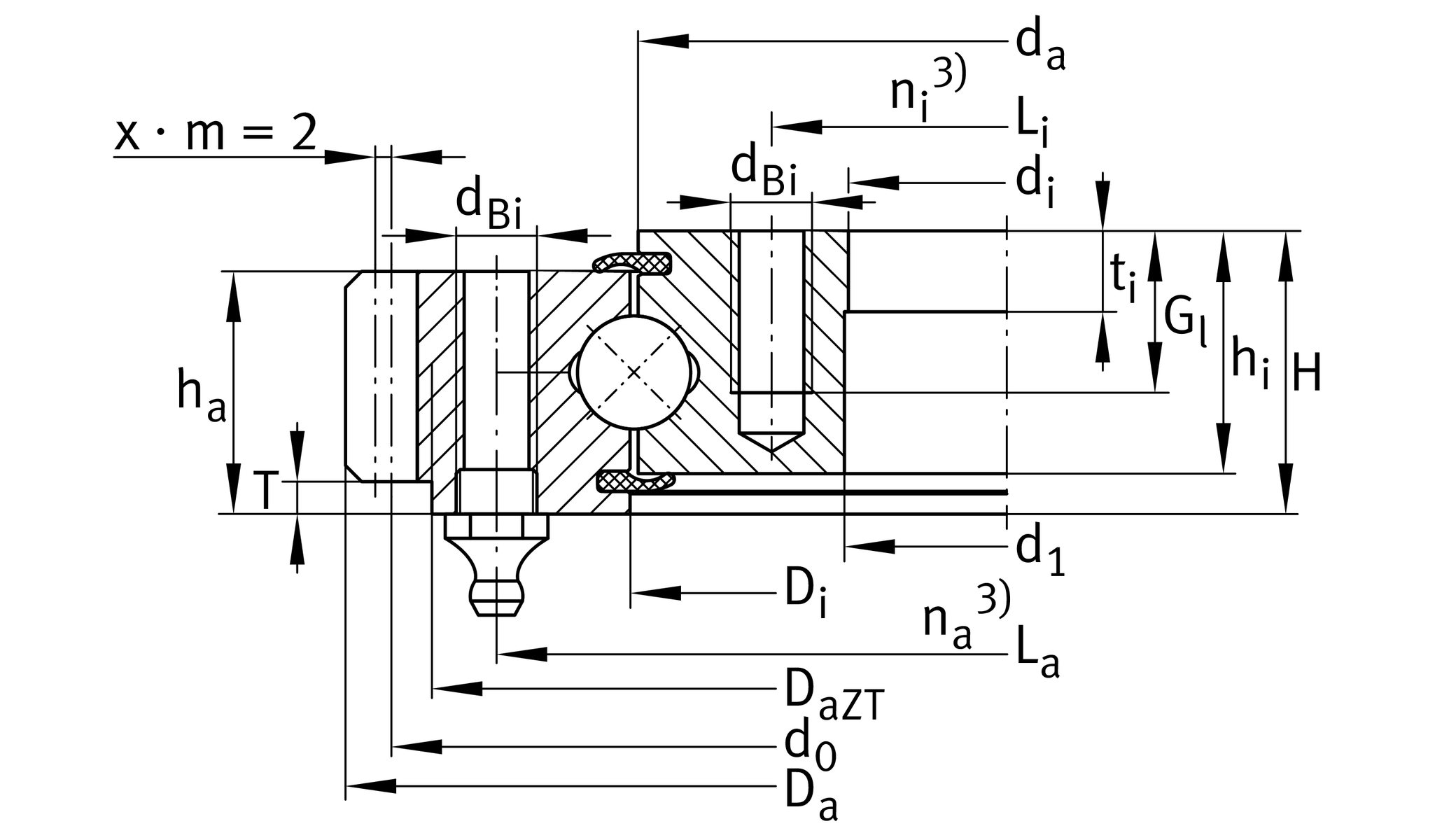 Pitchcircle diameter fixing holes outer ring