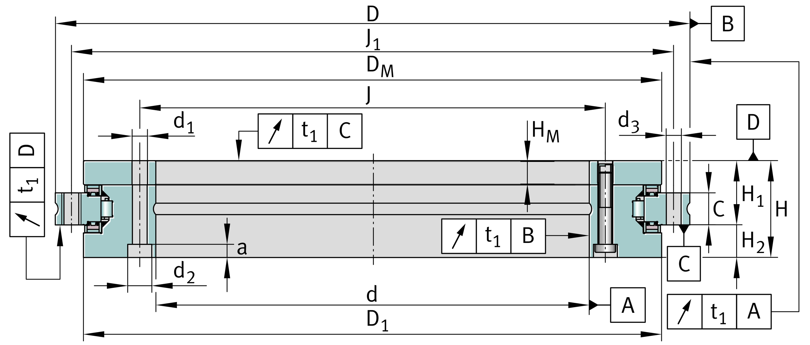 Axial and radial runout, measurement standard; Measured on mounted bearing, with ideal adjacent construction.
